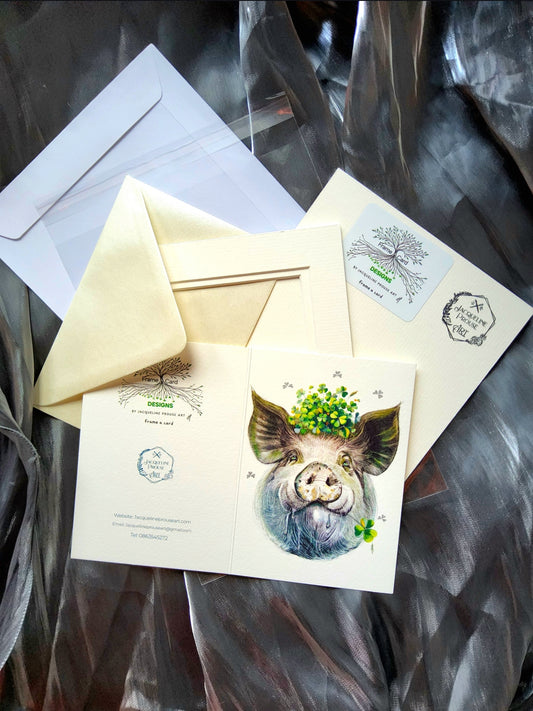 Greeting Frame A Card-Irish Shamrock Pig 🍀🐽🇮🇪