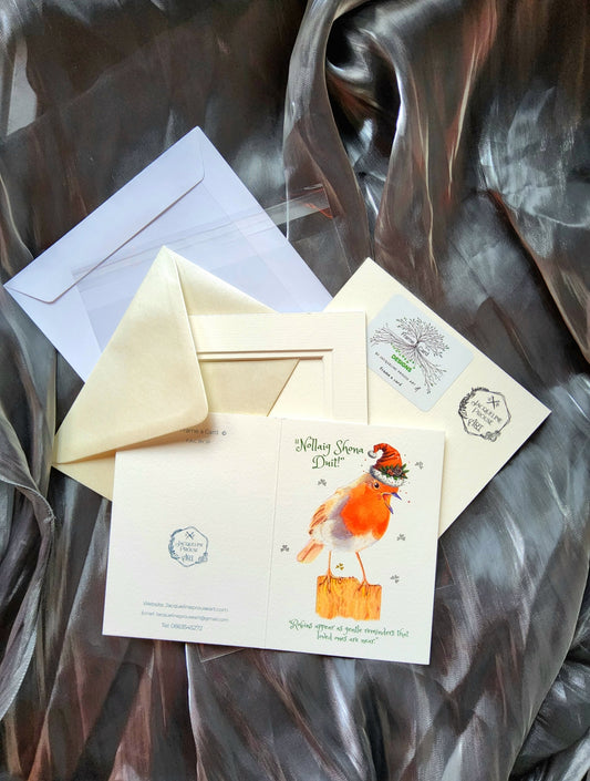 Hand-finished with silver and gold shamrocks and a touch of sparkle, each card is printed on luxurious cream-textured watercolour-style paper and doubles as a stunning piece of artwork, ready to frame and treasure.🍀