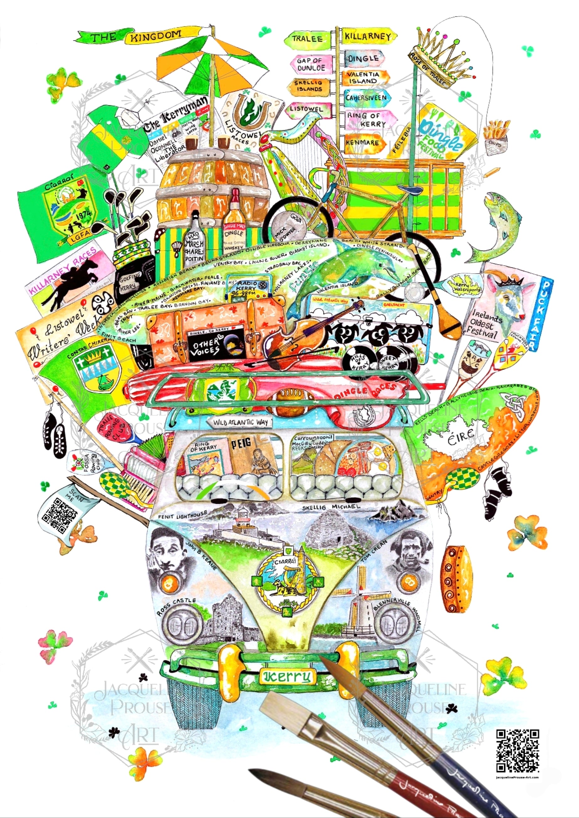 Each Rare Irish Wagon includes two discreet QR codes, one linking to that county’s official tourism page, and one to my website, simply scan them to explore stories, landmarks, and the world behind the artwork