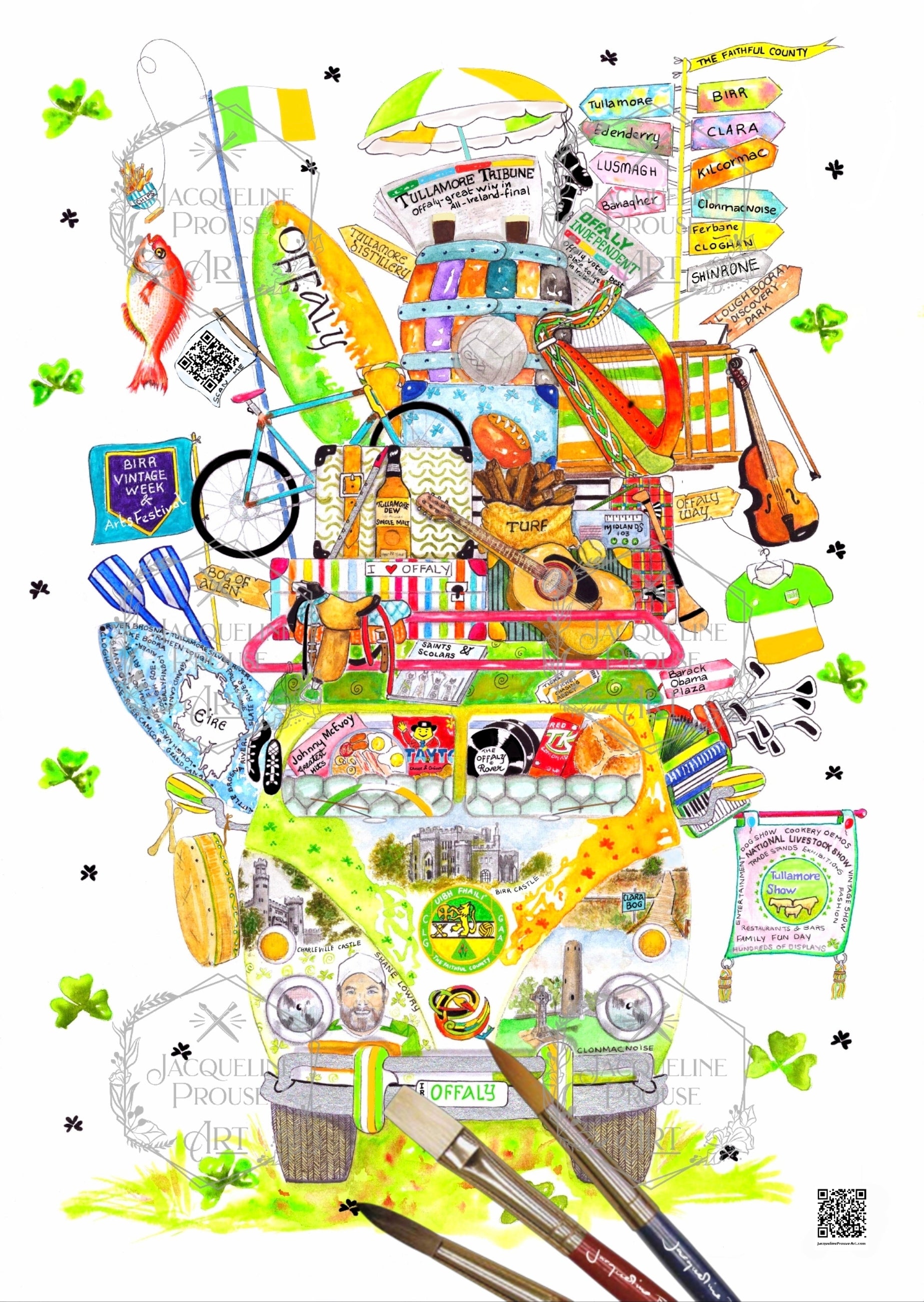 Each Rare Irish Wagon includes two discreet QR codes, one linking to that county’s official tourism page, and one to my website, simply scan them to explore stories, landmarks, and the world behind the artwork.