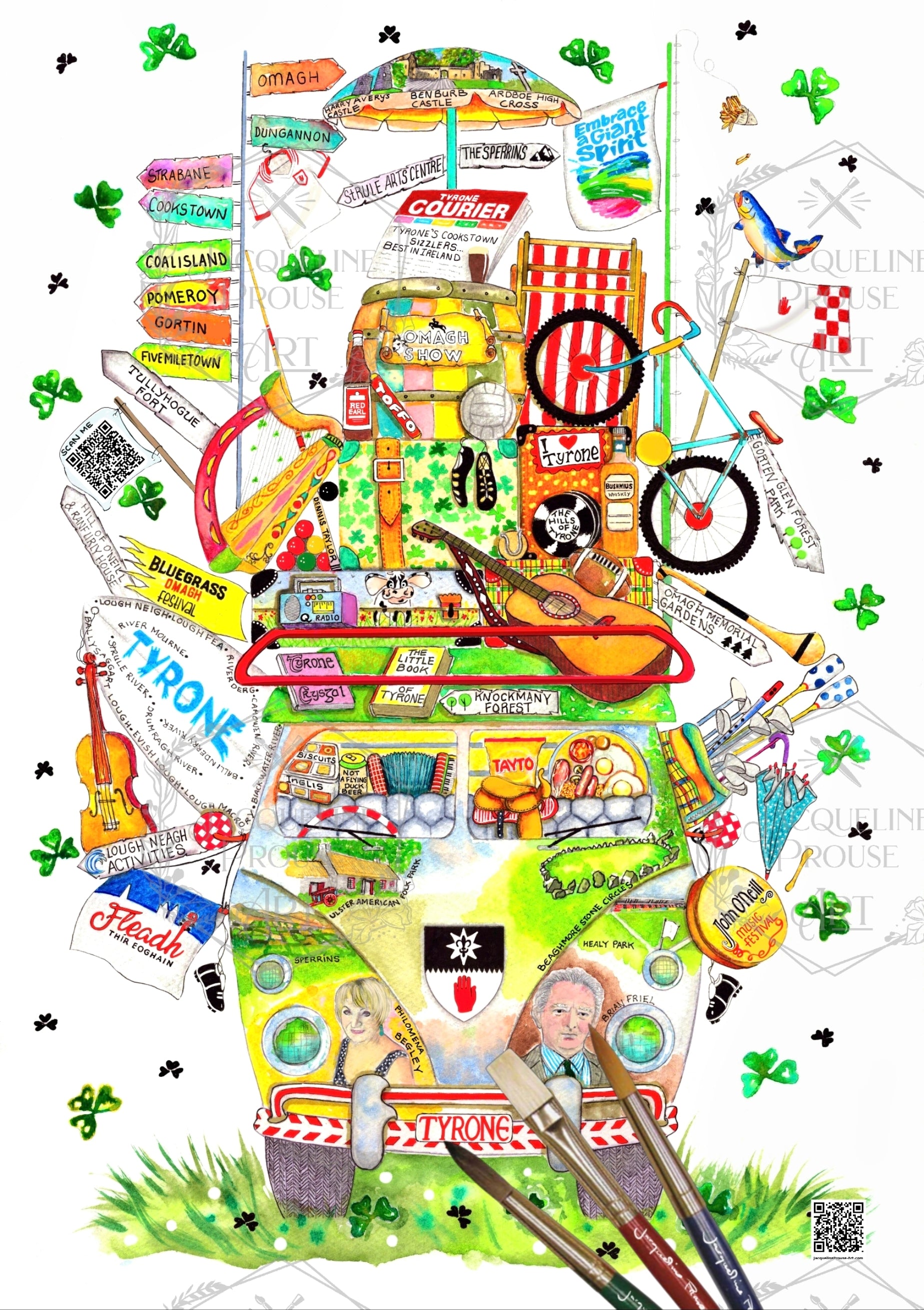 Each Rare Irish Wagon includes two discreet QR codes, one linking to that county’s official tourism page, and one to my website, simply scan them to explore stories, landmarks, and the world behind the artwork.